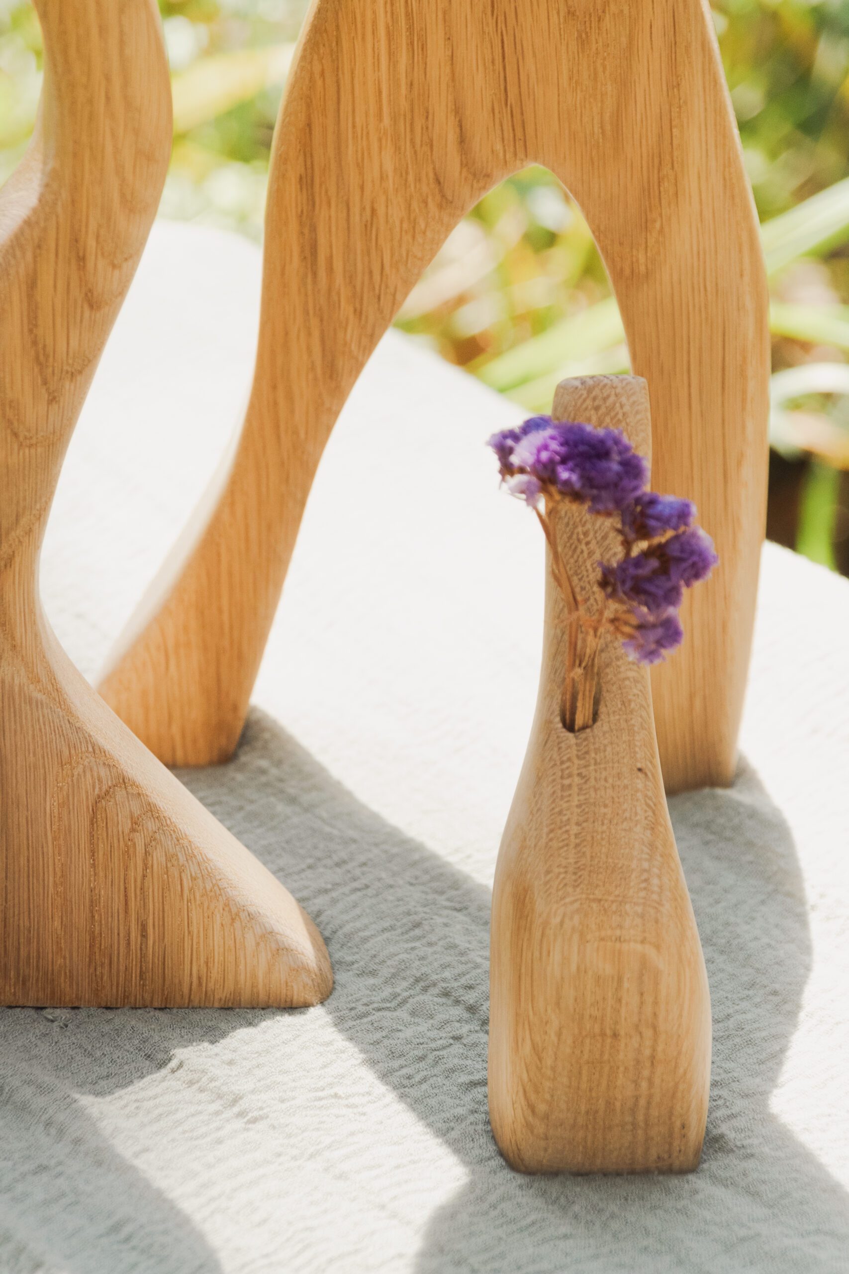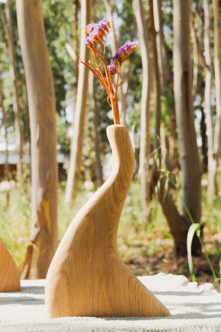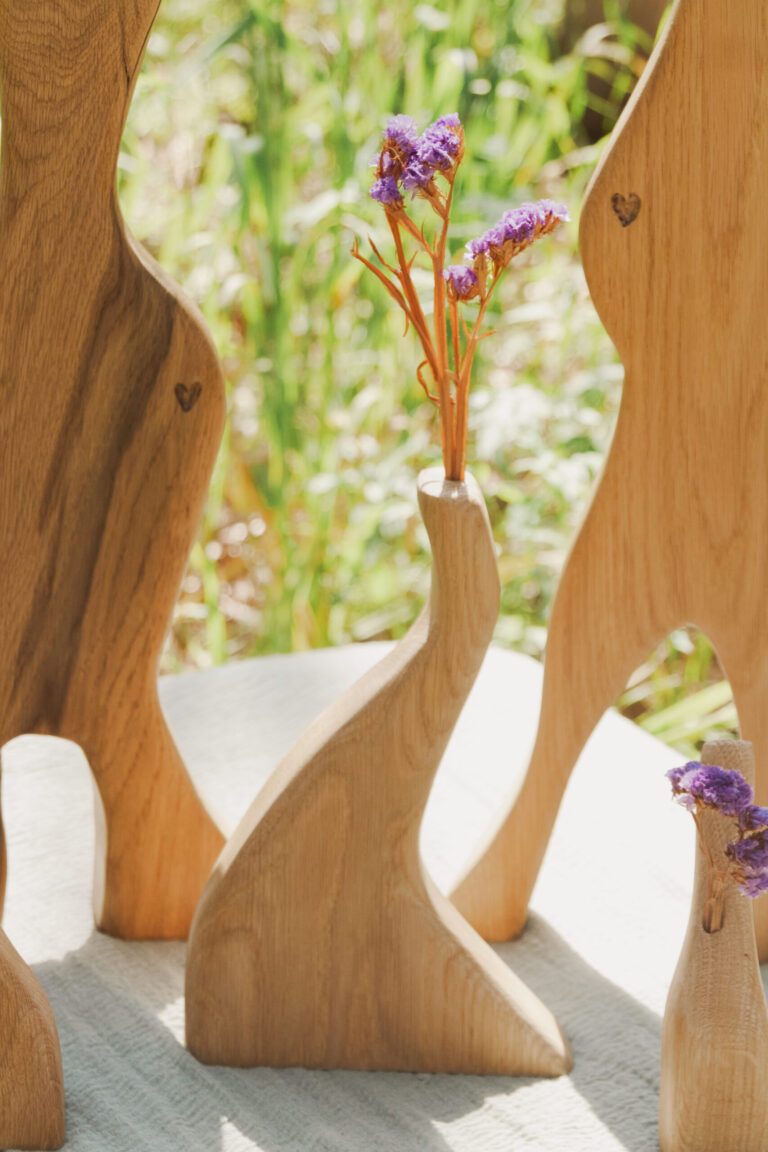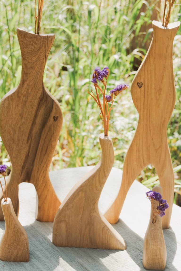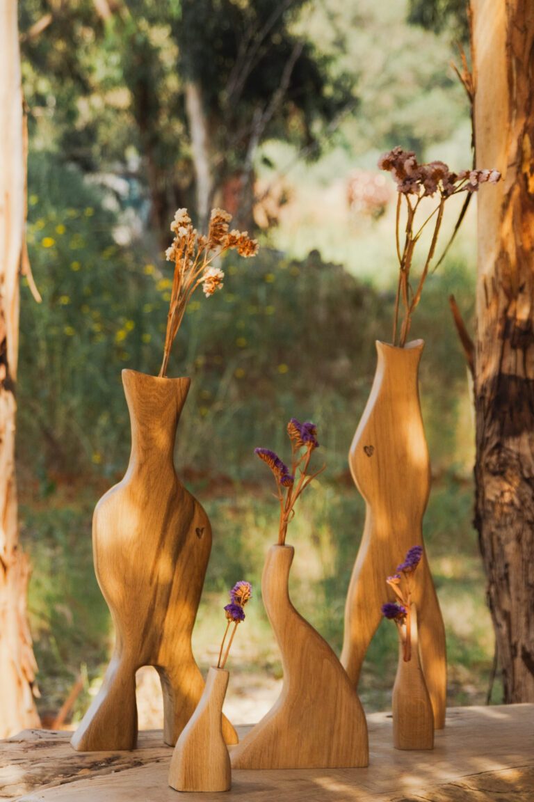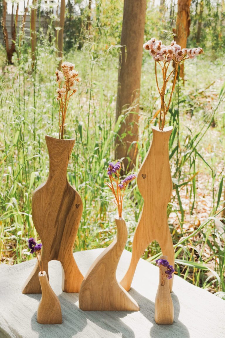 פסלי עץ דקורטיביים עם חור בקצה העליון לפרחים יבשים