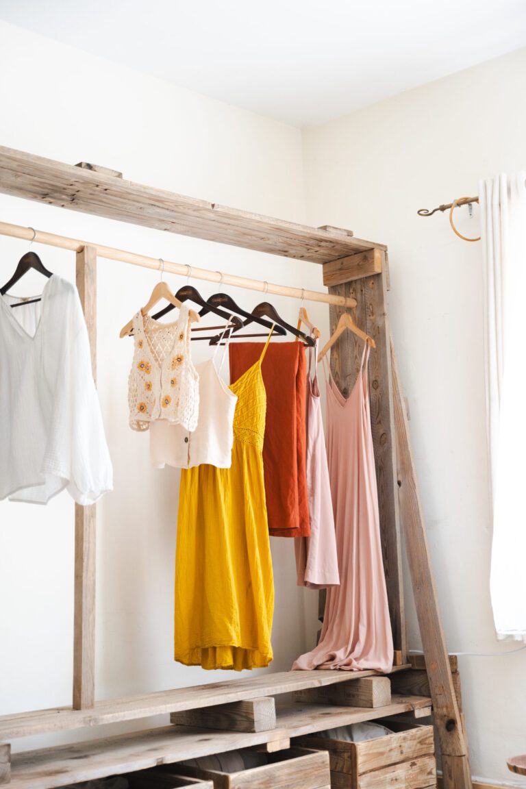 ארון תלייה עשוי ממשטחי אורן בגימור וינטג' אלגנטי