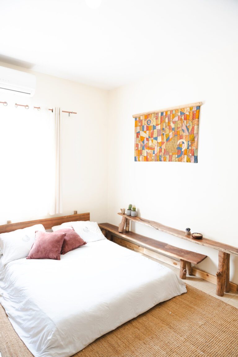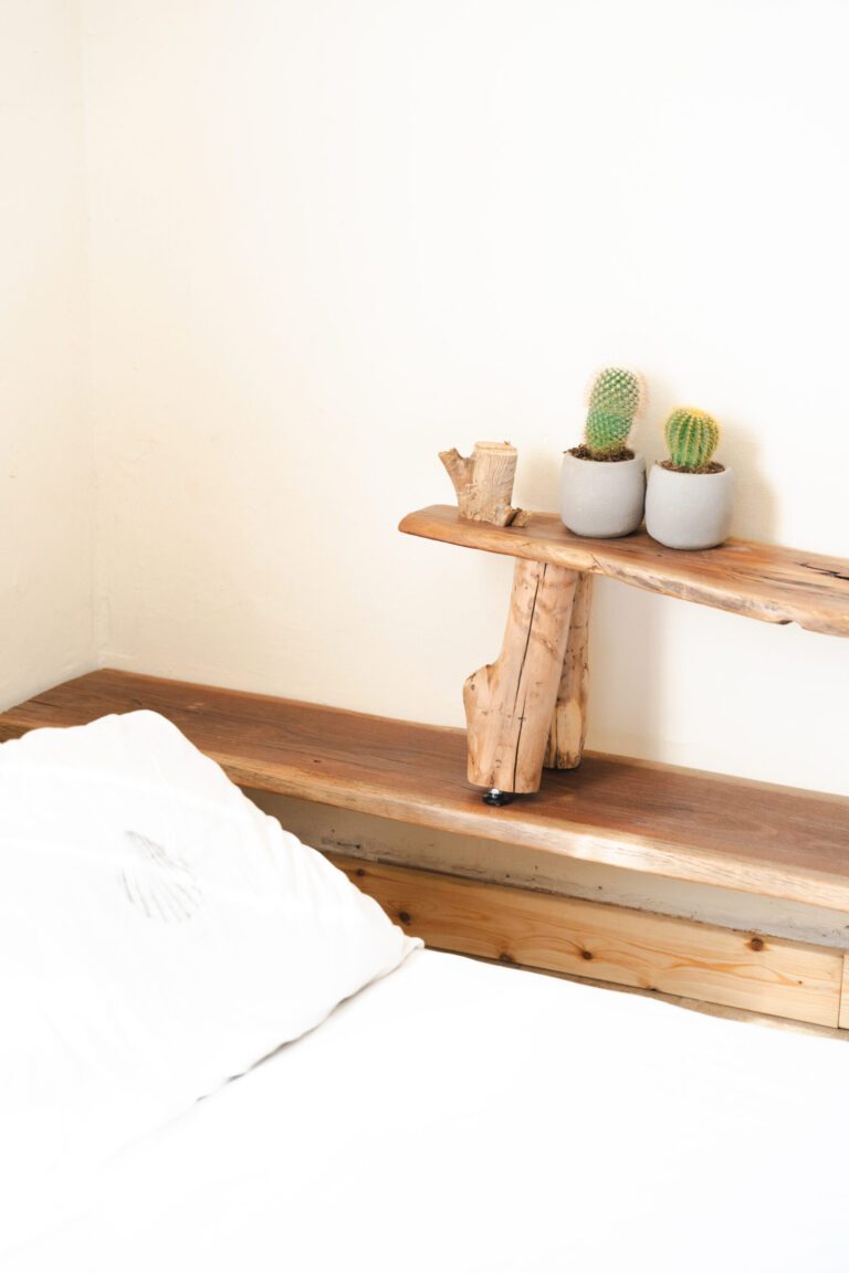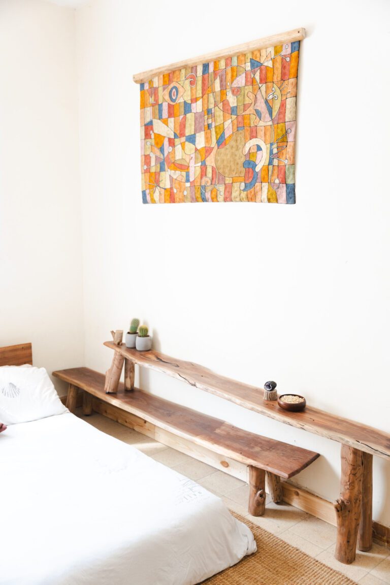 כחלק מפרויקט חדר שיינה במעוז אביב , שידה לאורך מיטה, שידת לילה וגב מיטה